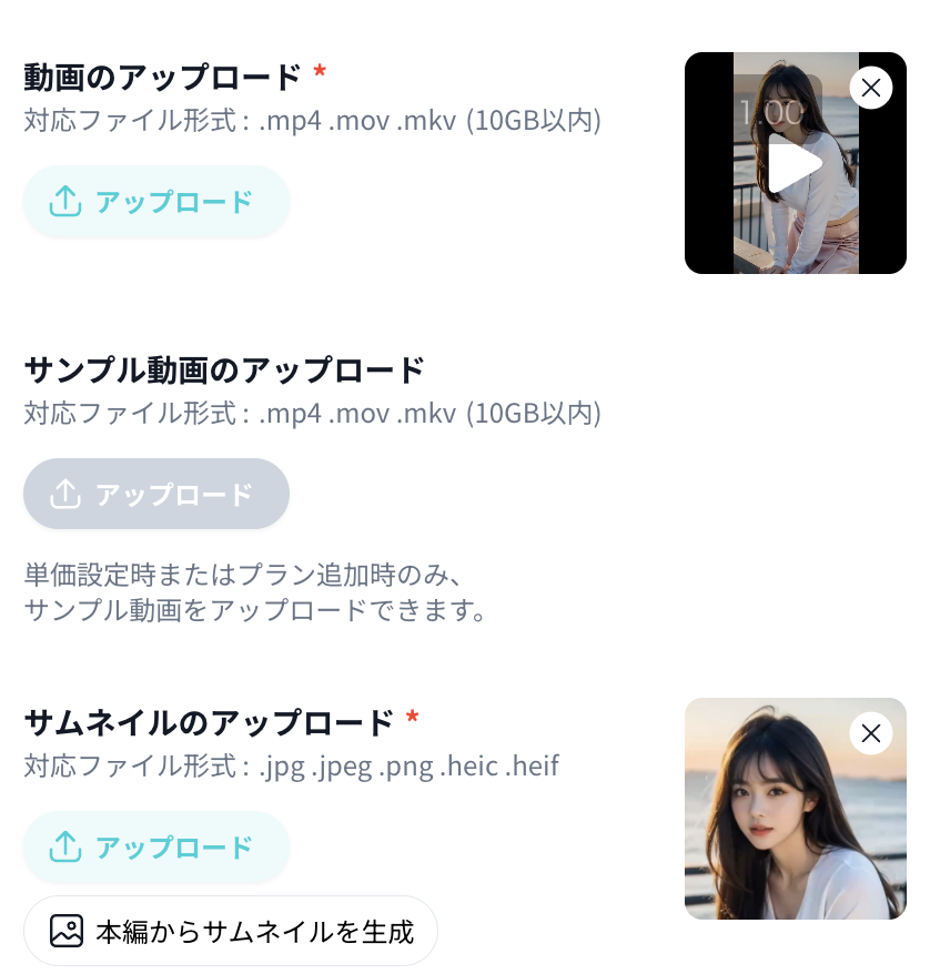 サムネイルは、ユーザーがプロフィールページに飛んできた時に一覧で表示される画像のことで、ここを魅力的に作り込むことで、ユーザーはどんな動画が見れるのだろうかと気になってクリックしてくれ、動画の購入やファンクラブの加入に繋がるので、力を入れて制作しましょう。