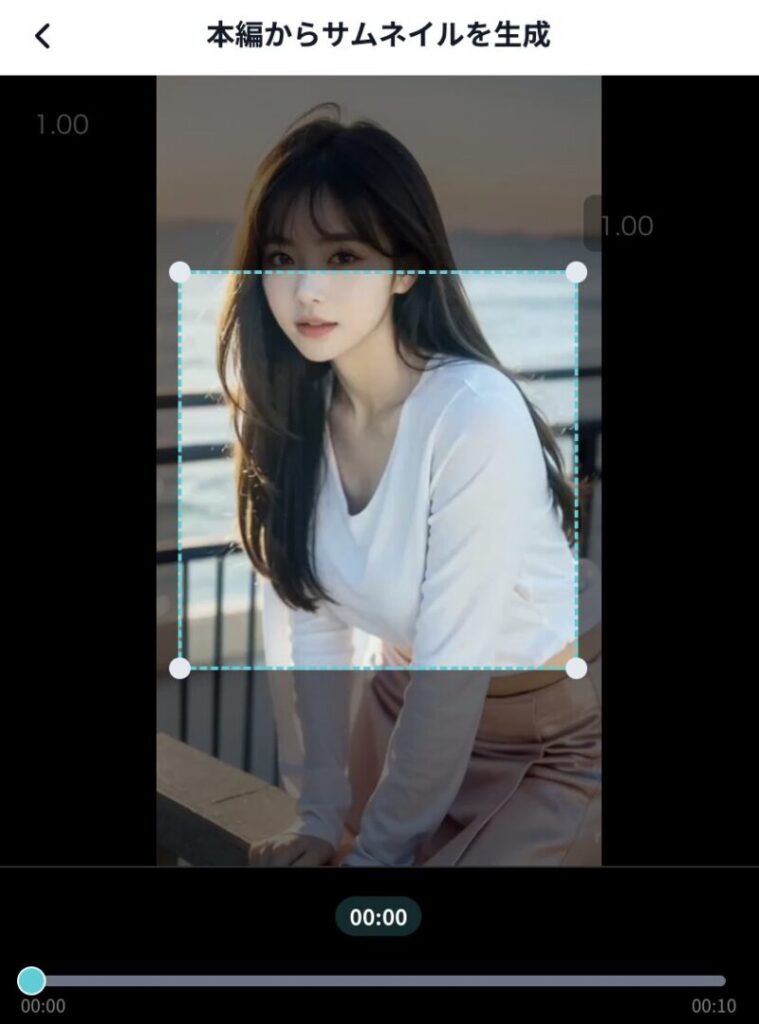 サムネイルは動画の一部からピックアップすることもできます。このように、動画の中で切り抜きたい部分を選択したら、その部分をサムネイルとして使用できます。